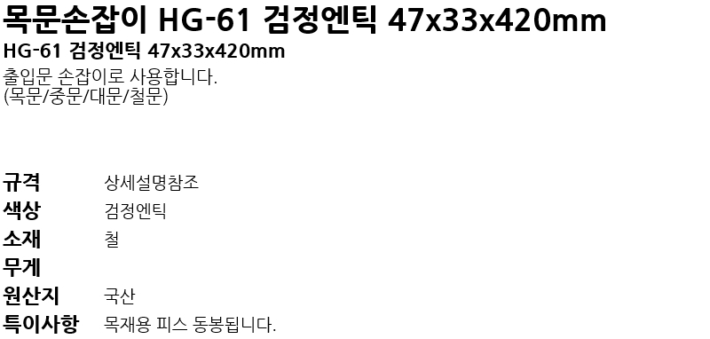 ¸ñ¹®¼ÕÀâÀÌ HG-61 °ËÁ¤¿£Æ½ 47x33x420mm
