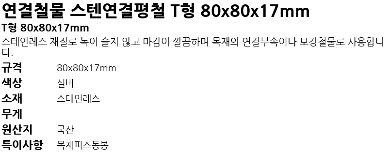 ¿¬°áö¹° ½ºÅÙ¿¬°áÆòö TÇü 80x80x17mm