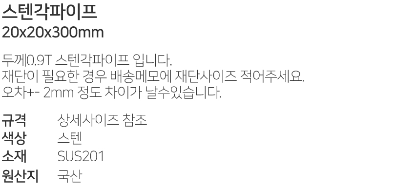 ½ºÅÙ°¢ÆÄÀÌÇÁ20x20x300mm