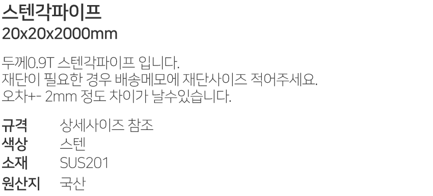 ½ºÅÙ°¢ÆÄÀÌÇÁ20x20x2000mm