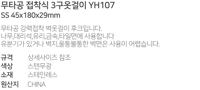 ¹«Å¸°øÁ¢Âø½Ä 3±¸¿Ê°ÉÀÌ YH107 SS 45x180x29mm