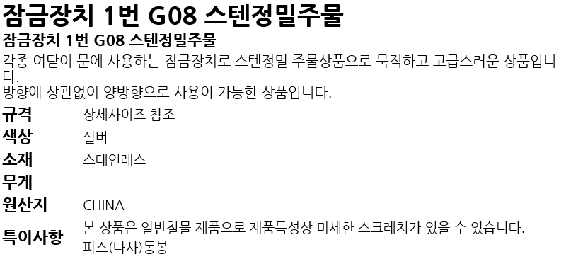 Àá±ÝÀåÄ¡ 1¹ø G08 ½ºÅÙÁ¤¹ÐÁÖ¹°
