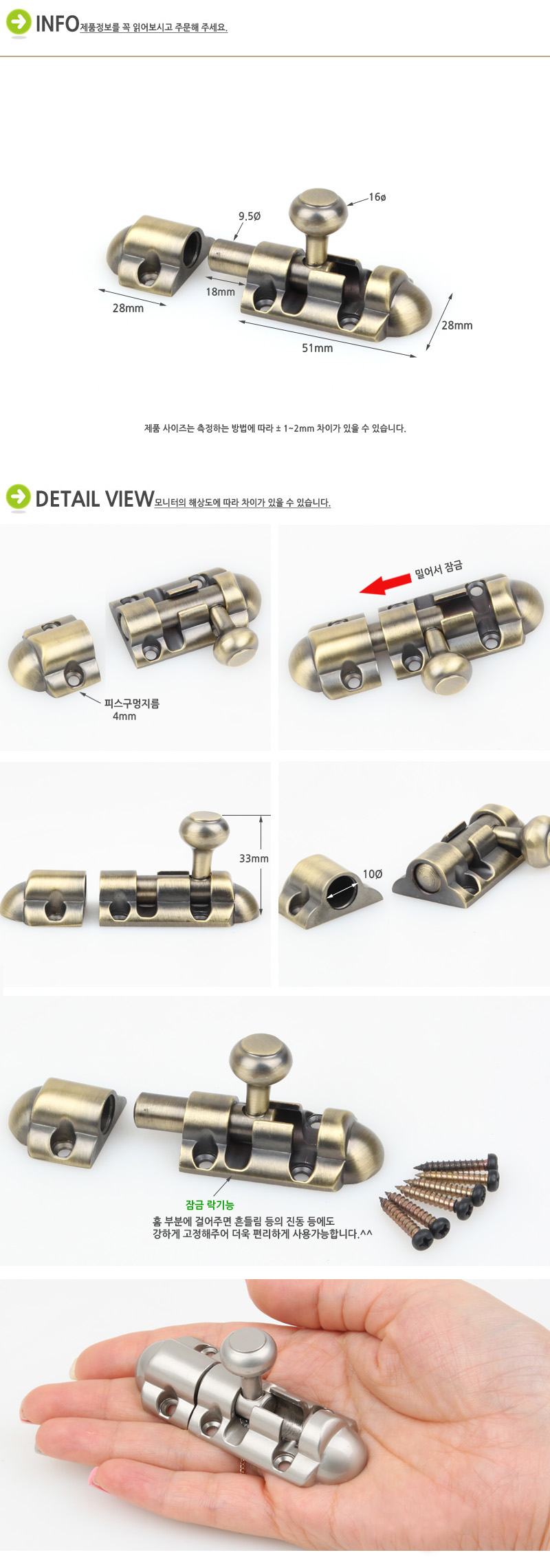 ¿ë µµ : °¢Á¾ ¿©´ÝÀÌ ¹®¿¡ »ç¿ëÇÏ´Â Àá±ÝÀåÄ¡·Î °íÁ¤È¦ÀÌ ÀÖ¾î Èçµé¸²µîÀÇ Áøµ¿¿¡µµ °ÇÏ°Ô °íÁ¤µË´Ï´Ù.