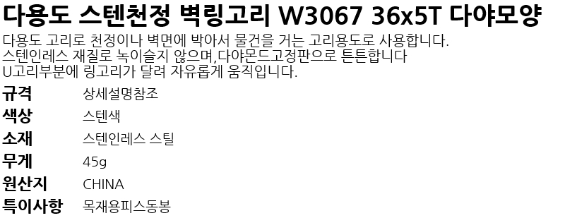 ´Ù¿ëµµ ½ºÅÙõÁ¤ º®¸µ°í¸® W3067 36x5T ´Ù¾ß¸ð¾ç
