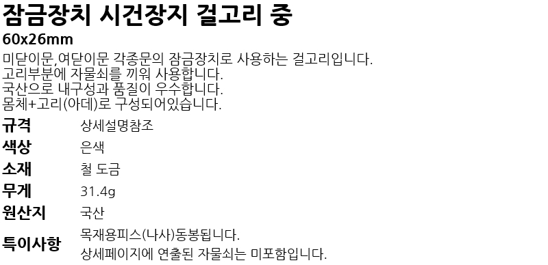 Àá±ÝÀåÄ¡ ½Ã°ÇÀåÄ¡ °É°í¸® Áß 60mm