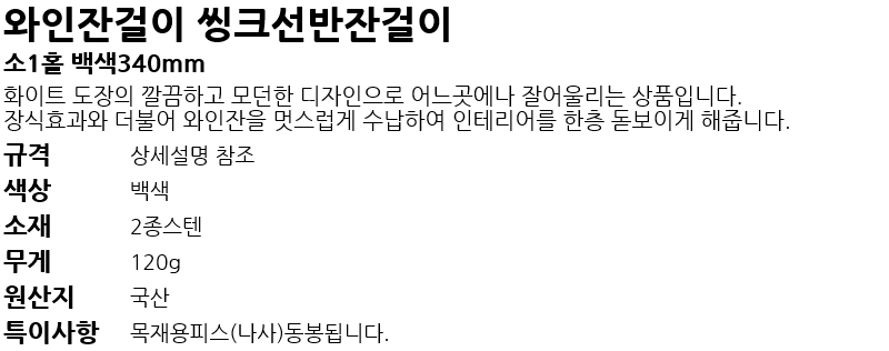 ¿ÍÀÎÀܰÉÀÌ ¾ÅÅ©¼±¹ÝÀܰÉÀÌ ¼Ò1Ȧ ¹é»ö340mm