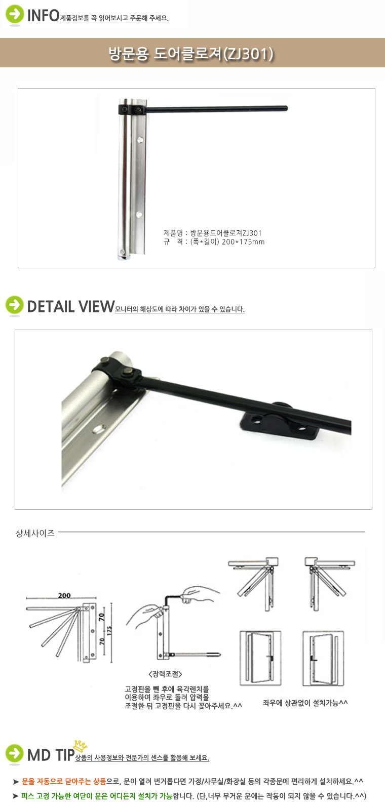 ¿ë µµ : ¹®À» ÀÚµ¿À¸·Î ´Ý¾ÆÁÖ´Â »óǰÀ¸·Î Çǽº°íÁ¤ÀÌ °¡´ÉÇÑ ¿©´ÝÀ̹®¿¡´Â ¸ðµÎ ¼³Ä¡°¡ °¡´ÉÇÕ´Ï´Ù.