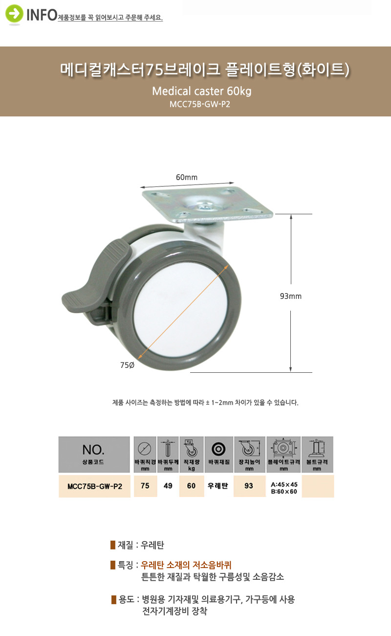 ǰ ¸í : ¹ÙÄû/¸ÞµðÄÃij½ºÅÍ75¨ªºê·¹ÀÌÅ© Ç÷¹ÀÌÆ®Çü(ÈÀÌÆ®)/MCC75B-GW-P2