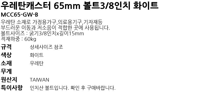 ¿ì·¹Åº¹ÙÄû65mm º¼Æ®Çü3/8ÀÎÄ¡ MCC65-GW-B ÈÀÌÆ®