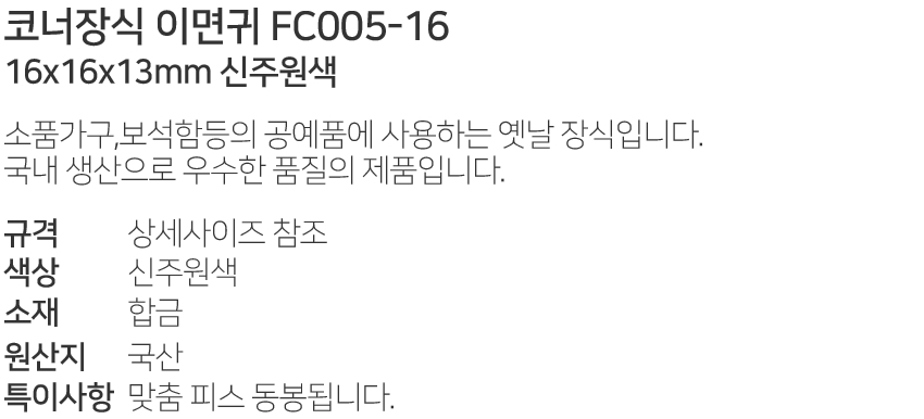 ÄÚ³ÊÀå½Ä À̸é±Í FC005-16 16x16x13mm ½ÅÁÖ¿ø»ö