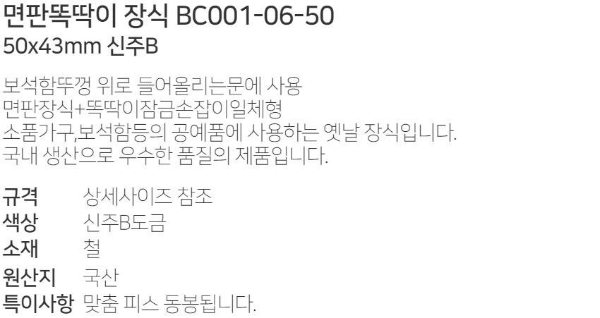 ¼ÕÀâÀÌ ¸éÆÇ¶ÈµüÀÌ Àå½Ä BC001-06-50 50x43mm ½ÅÁÖB