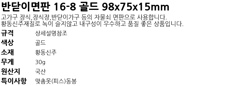 ¹Ý´ÝÀ̸éÆÇ16-10 ±Ý»ö 72x62mm