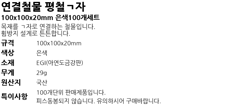 ¿¬°áö¹° ÆòöL100x100x20mm Àº»ö100°³¼¼Æ®