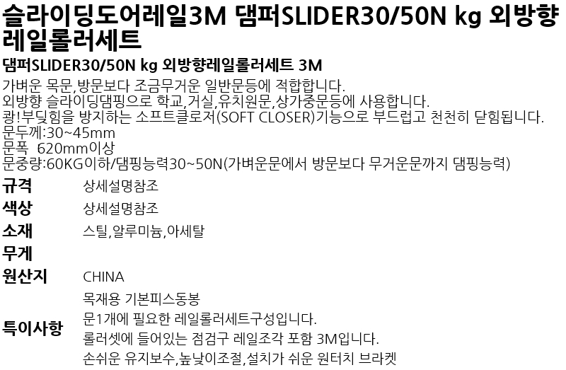 ½½¶óÀ̵ùµµ¾î·¹ÀÏ3M ´ïÆÛSLIDER30/50N kg ¿Ü¹æÇâ·¹ÀÏ·Ñ·¯¼¼Æ®