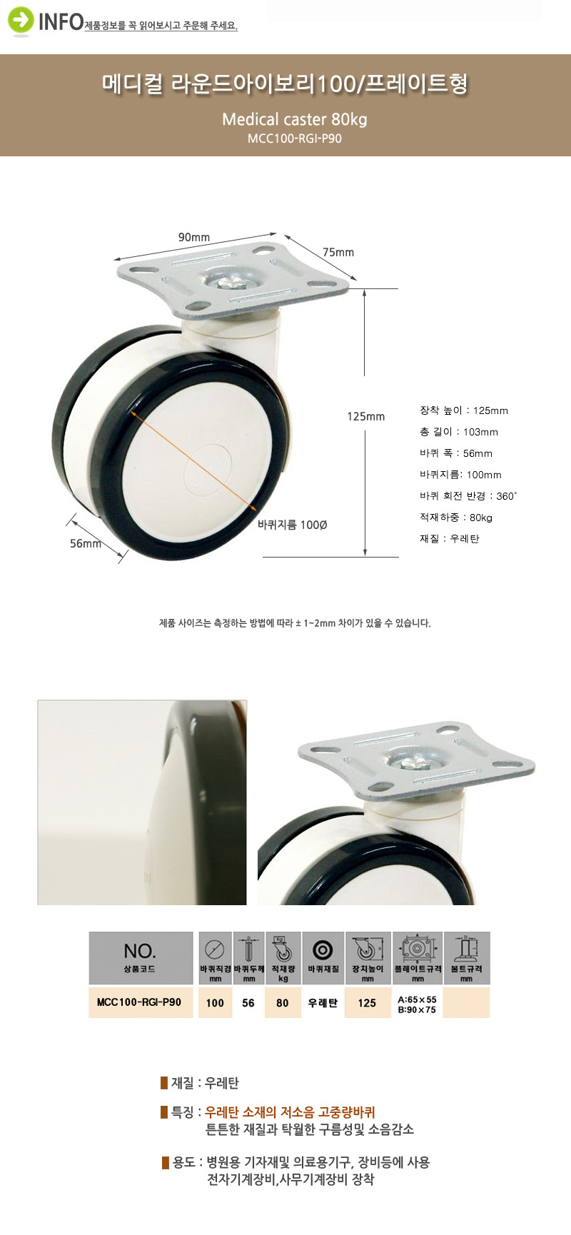 ǰ ¸í : ¹ÙÄû/¸ÞµðÄà ¶ó¿îµå¾ÆÀ̺¸¸®100¨ª Ç÷¹ÀÌÆ®Çü/MCC100-RGI-P90